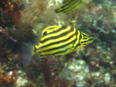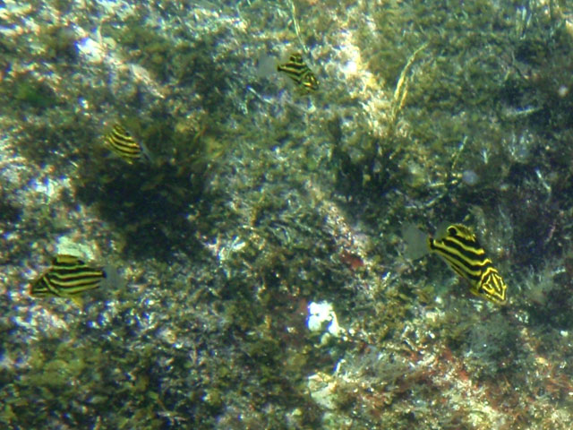 小さくて可愛いカゴカキダイが群れてました。 全然逃げないんだけど,撮影は困難です。 波に揺れまくるから・・・