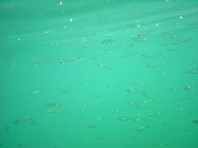 クラゲ以外に何かいないものかと探していたら, 種類はよくわかりませんが,キラキラ光る小魚の群れを発見♪