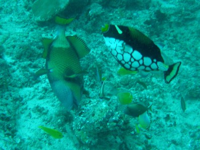 ゴマモンガラ(左),モンガラカワハギ(右)など