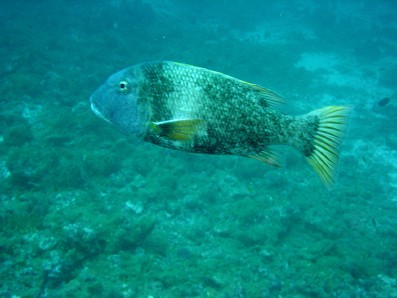 モルジブのフィリピンスズメダイは,尾だけ黄色いようです。