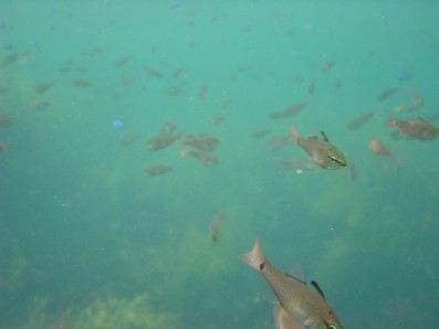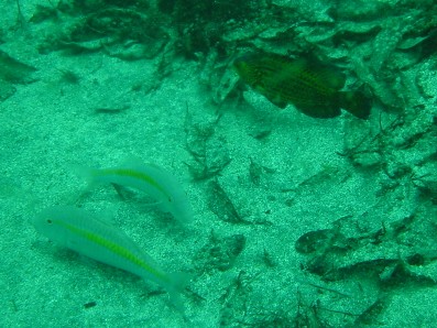 手前にいる黄色い筋の入ったお魚は,ウミヒゴイでしょうか?