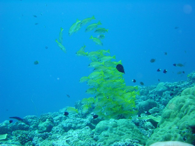 遠くにヨスジフエダイのかたまりを発見! 近寄って撮影しようと,移動を開始したところ・・・