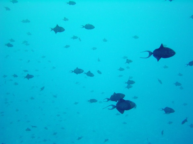 オオメカマスの群れに盛り上がって, ついでに,横にいたアカモンガラも撮っちゃました。 直後,深度が滅茶苦茶になりました。 安全停止中は,じっと見るだけにしときます。反省。