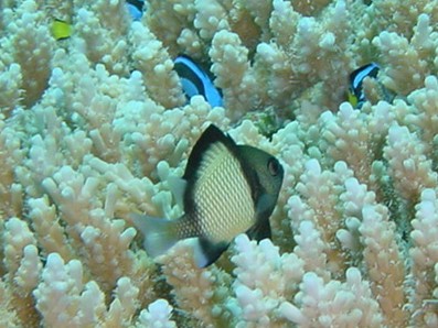 これも同じ種類なんですよ(汗) 「チビは可愛いのに,大きくなると可愛くなくなるシリーズ」に, ミツボシクロスズメダイと一緒にエントリーですね。 そういえば,ミツボシ・・・は,大きいのしか見なかったなぁ