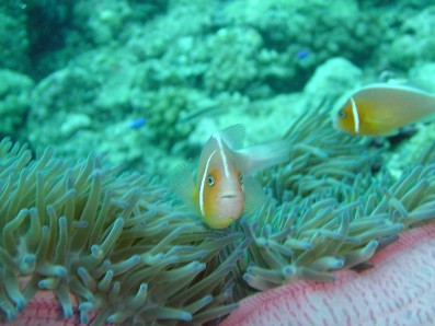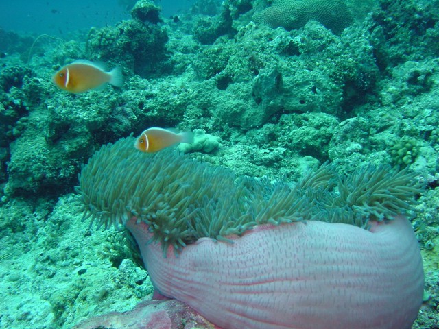 パラオはクマノミが少ないと聞いていたのですが, ハナビラクマノミは,結構見かけました。