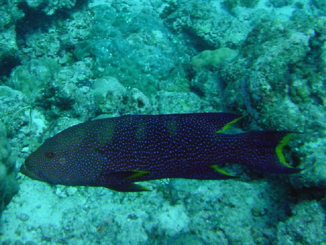 1カ所に50cmくらいの魚が3匹いて,見ごたえがありました。 そのうちの1匹。こうして見ると,けっこう派手だねぇ 実際に見たときは,他の2匹が目立ってたので印象は薄いです。