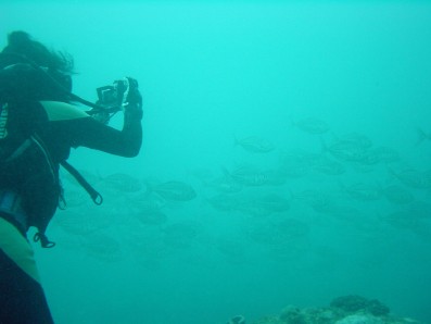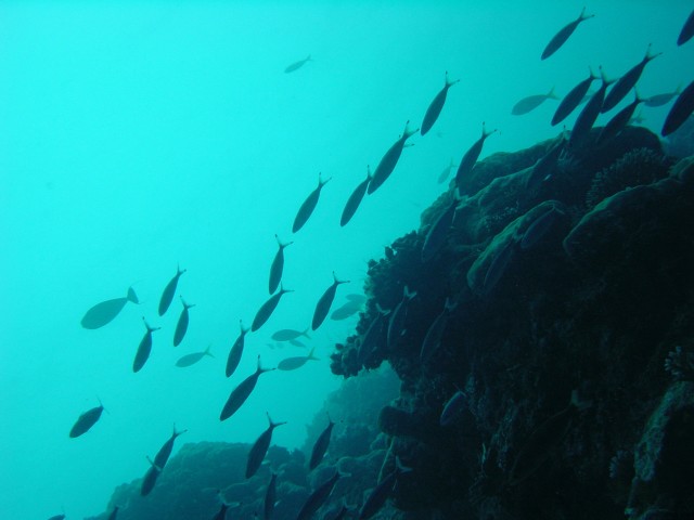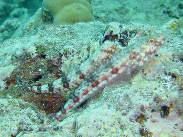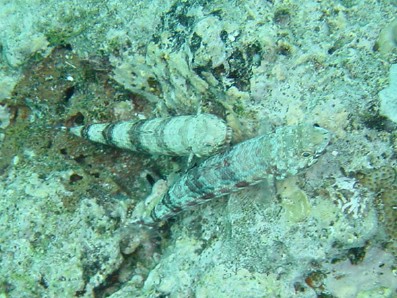 横から撮ったら赤く写りました。 深度5m位だと思うけど,光って届かないものですねぇ エソを見るのは初めてなので,ちょっと嬉しかったです。