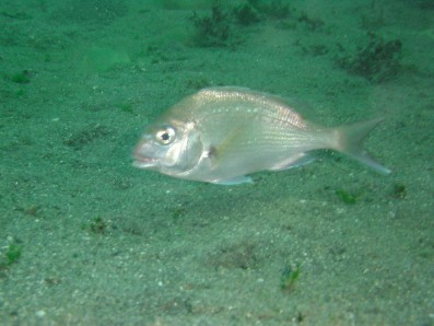 ハゼを探していると,マダイが様子を見に来ました。 せっかくなので写真を撮ろうと思ったら, すぐ逃げるんだ・・・