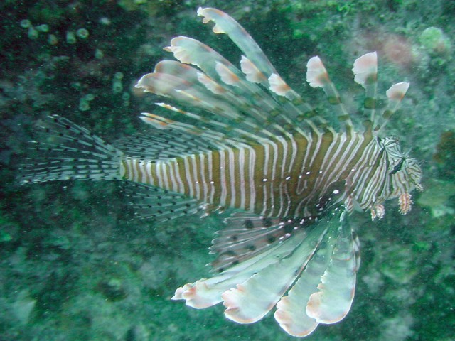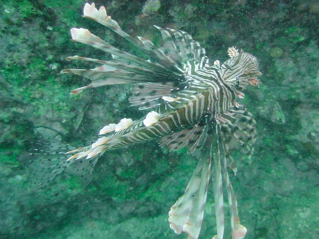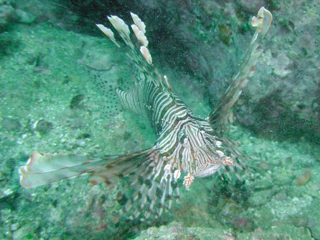 尾鰭に斑紋があるので,ハナミノカサゴでした。