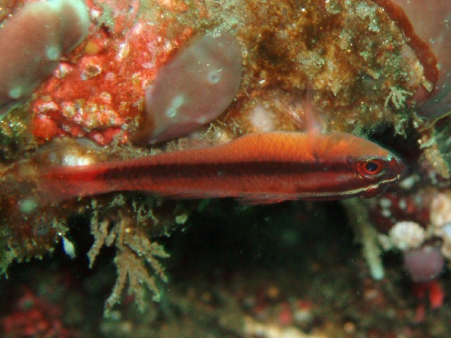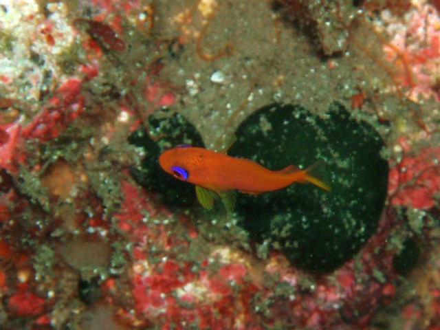 キンギョハナダイのチビを発見! すぐ隠れちゃうんだけど,30秒くらい待ってると出てくるので, 粘って12枚も撮影しました! でも,これが一番まともな1枚・・・