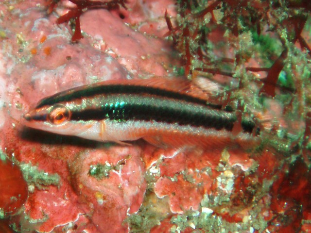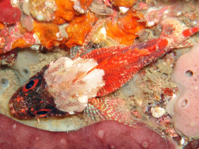 マフラーを巻いたようなイソカサゴです。 このタイプ,結構いるみたいです。 白いヤツと白くないヤツで,何が違うんだろう?