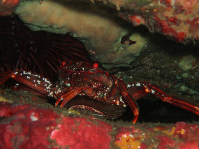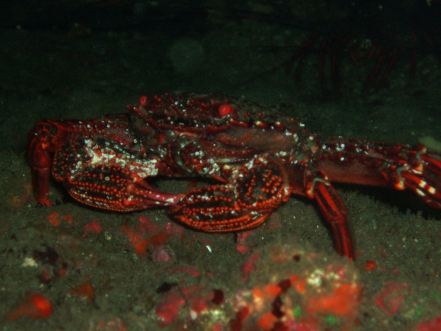 以前イセエビがいたところに,今回はカニがいました。