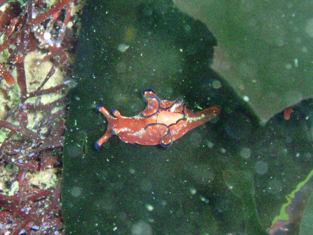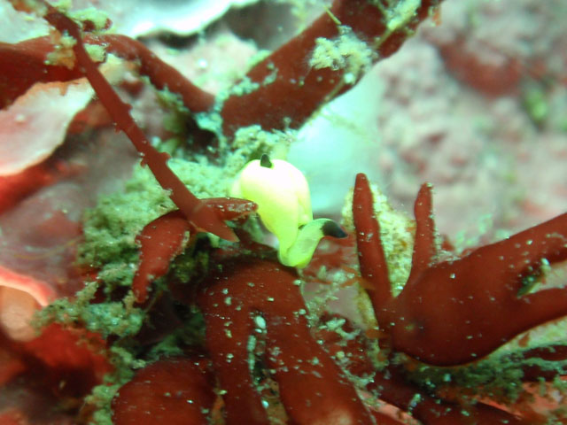 海藻に乗ってました。 苦労して撮ったんですが・・・ あちこちに,大量にいました。 珍しいウミウシじゃないのね・・・