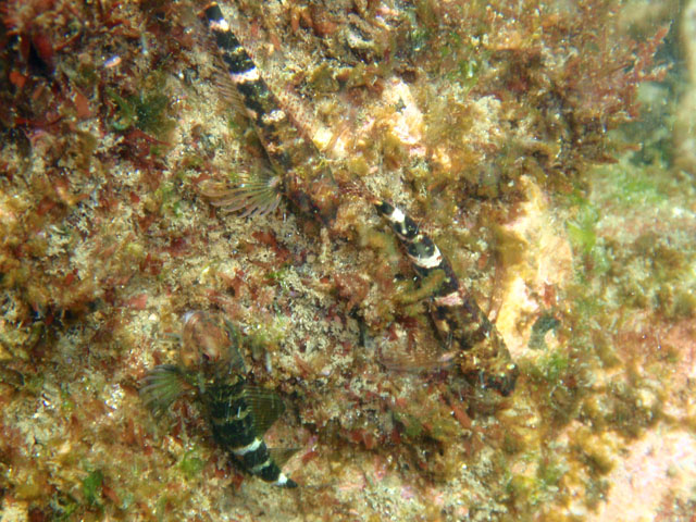 ヘビギンポは,今回の隠れテーマ! フィンを脱ごうとした時に見つけた♪ 3匹集まってましたが,産卵間近の雌かな? 左下のは,雰囲気が違う気が・・・