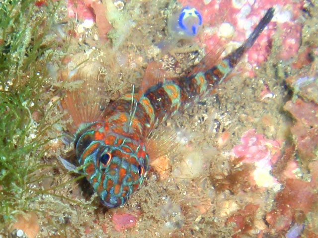 久しぶりのヒメギンポですが,キレイに撮れない。 奥の青いホヤに,少し気がいってしまったからかなぁ