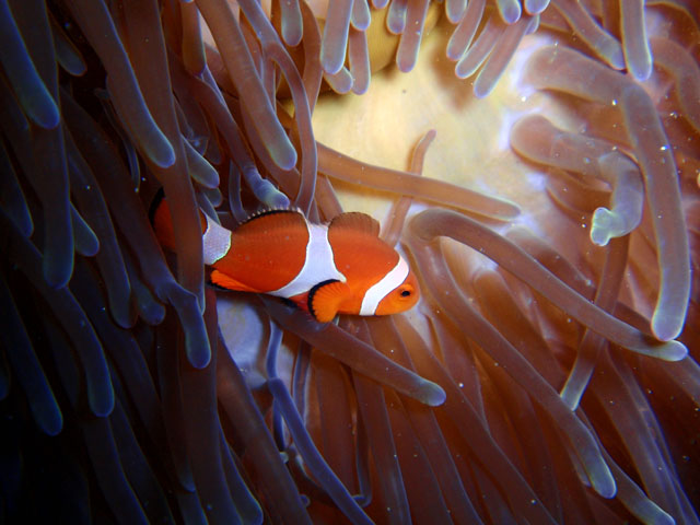 根を回り込むと,カクレクマノミ発見♪ 初めて見ました!(海の中では) 動き回るので撮影が大変でしたよ。