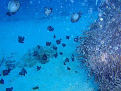 カクレクマノミの隣人は,大家族! キレイに撮りたかったんだけど,ハレーションだらけ。 発光禁止にしておけばよかった・・・