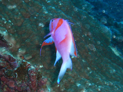 ここのポイントの目玉は,ポイント名にもあるとおり, スミレナガハナダイです♪ 18mくらいで出会えます! 浅い!