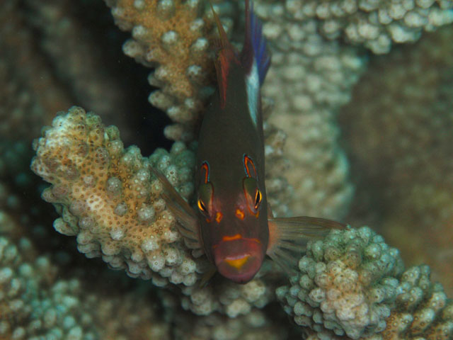 ホシゴンベのそばで,小さいサラサゴンベを発見! こっちは結構可愛かったんですが, 先を急いでたので,このときは適当に。 その後,撮る機会はありませんでした・・・
