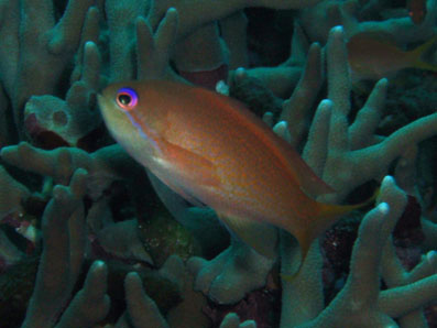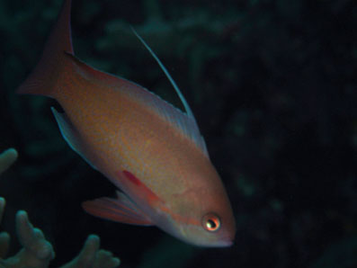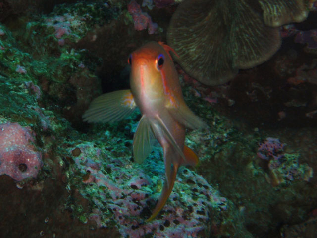こちらは近くに居た雌。 これまた暗い写真ですなぁ(泣) キンギョハナダイの撮影は,あまりできなかったので, こういう1枚が失敗だと,悲しいです。