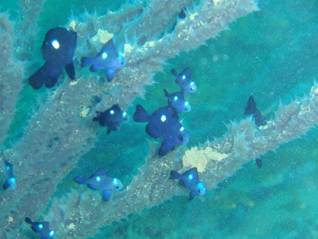 マクロの宝庫! ヒナイビーチ! ビーチと言ってもボートポイントです。 出迎えてくれたのは,ダンダラスズメダイ。 なんか地味・・・(汗)