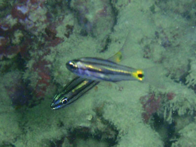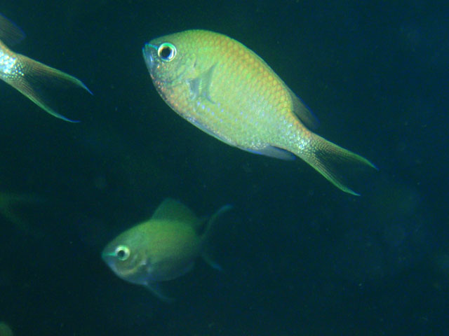 そして,デバスズメダイ! ほとんど特徴のないスズメダイです(汗) 群れは,あちこちで見かけますが, 普段は,うまく寄れないので,この写真が撮れて嬉しい!