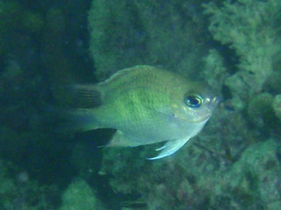 続いて,クラカオスズメダイ! 線の薄いオヤビッチャだなと思って撮りましたが, ぜんぜん違う種類でした(汗)