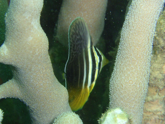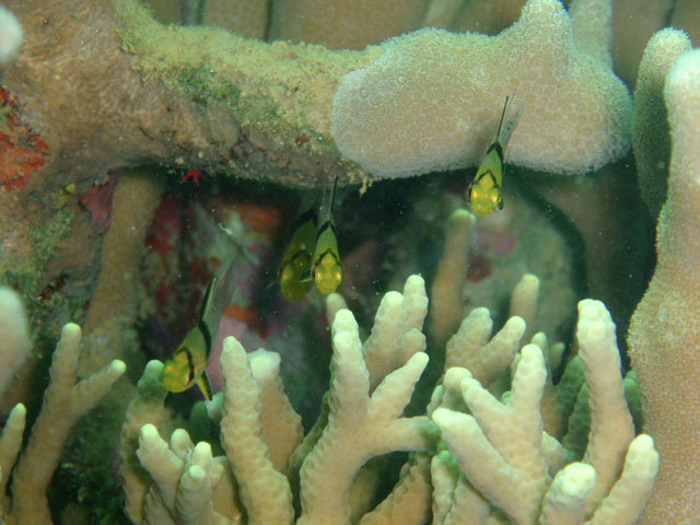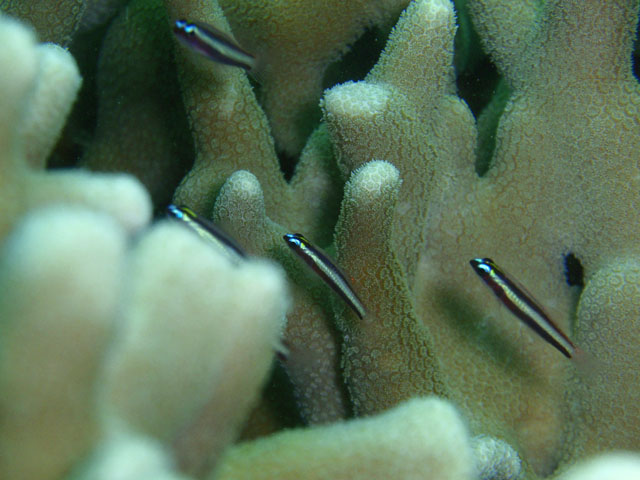 エダサンゴの中に,ハギの子供を発見♪ もうちょっと横を向いたところで撮りたかったんですが, こういうところじゃ,贅沢は言えません。
