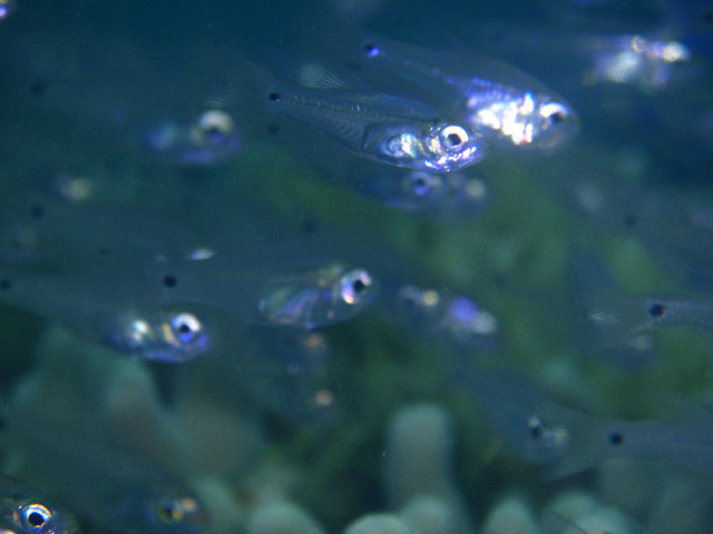 珊瑚の周りはテンジクダイだらけ! 撮ってるときは,種までわかってなかったんですが, 尾柄部の黒ポチは, ウスモモテンジクダイだったんですね!