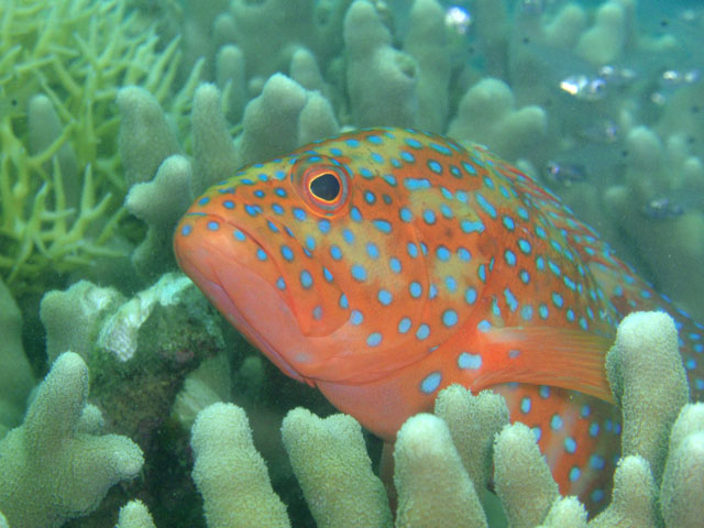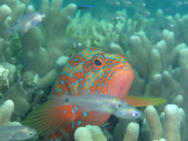 エダサンゴの中をチョロチョロと! 出てくるまで,しばらく待って, ようやくいいところに出てきたら,光らない・・・ 何故だ!? 何が悪いんだ!?