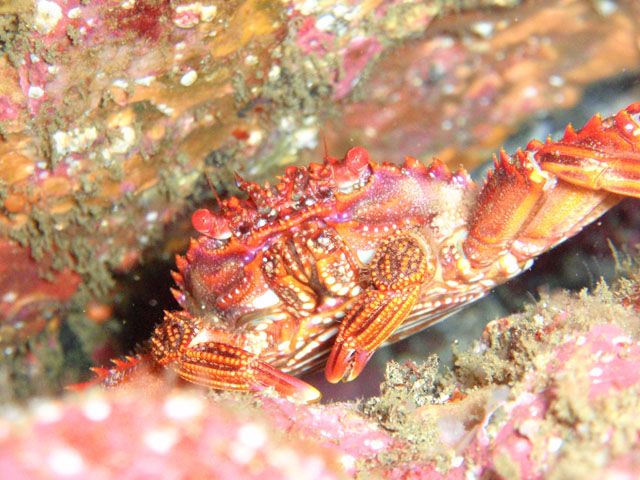 ハゼを探して亀裂を覗き込むとカニが。