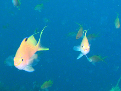 こちらはキンギョハナダイの大群。 全然色が出ませんね・・・ 13mでも深いんだねぇ 勉強になります。