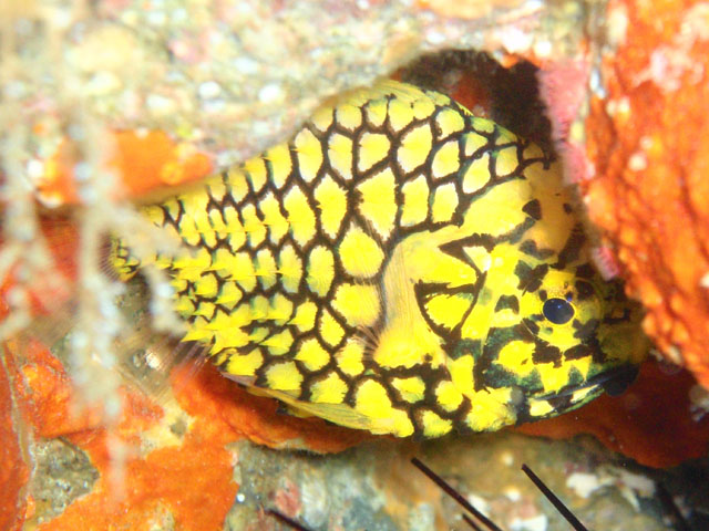 今回の目玉のひとつ! 紅白のハナタツです!! ガイドさんが「紅白の・・・」と示してくれたので, 赤と白,2匹いるものとばかり思ってました(汗)