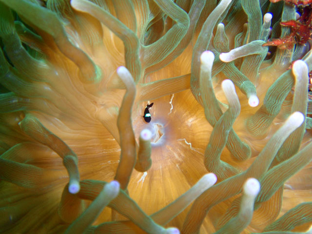 ちびちびのミツボシクロスズメダイ。 撮れない!撮れない!(汗) いつかは,バッチリ撮れるようになりたい!