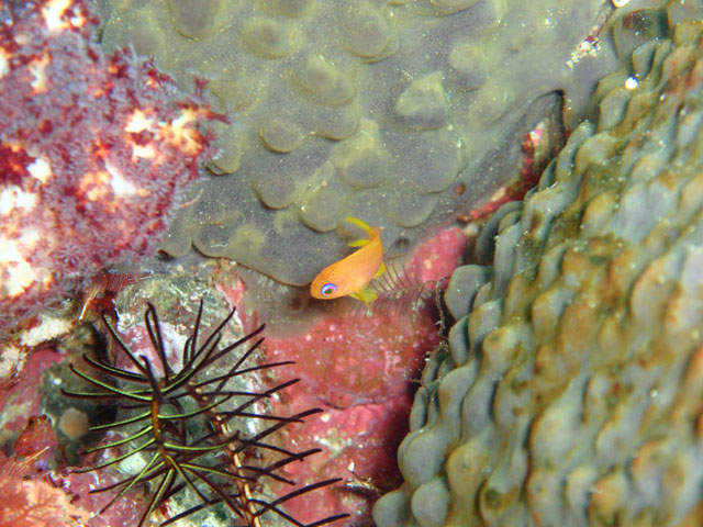 ちびちびのキンギョハナダイ。 こちらは,そこそこ撮れる! 生息環境の違いなんだろうけど, 本人は,気合いと情熱の差だと思っている。