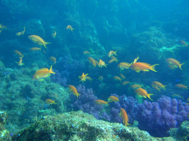 キンギョハナダイの群れも撮影。 7mくらいだと色がそこそこ出るのね。 今度から深度も気にしながら撮影しよっと。