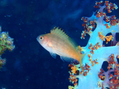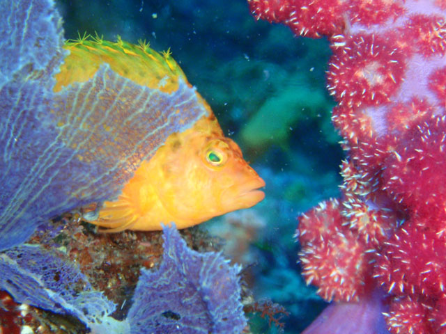 知らないハナダイかなぁと思ったんですが, 誰も注目してないし,鰭の形が違う気がするし。 ウイゴンベだったんですね。初めて見ました。