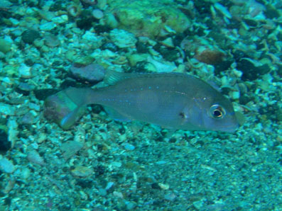 あまりに被写体がいないので, 目の前を横切ったマダイのチビを撮影してみました。 いざ撮ろうと思うと,すぐ逃げるので難しいです。