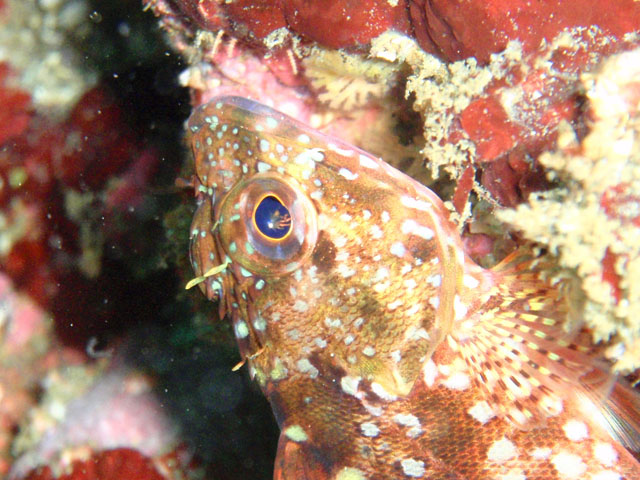 忘れてた。下の方には,カサゴもいました。 1枚だけ,顔を大きめに撮って,終わり。 早々に,トウフ岩を去りました・・・